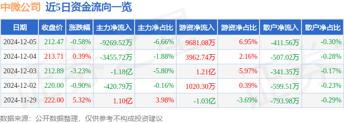 12月5日的资金流向数据方面,主力资金净流出9269.52万元,占总成交额6.66%,游资资金净流入9681.08万元,占总成交额6.95%,散户资金净流出411.56万元,占总成交额0.3%。