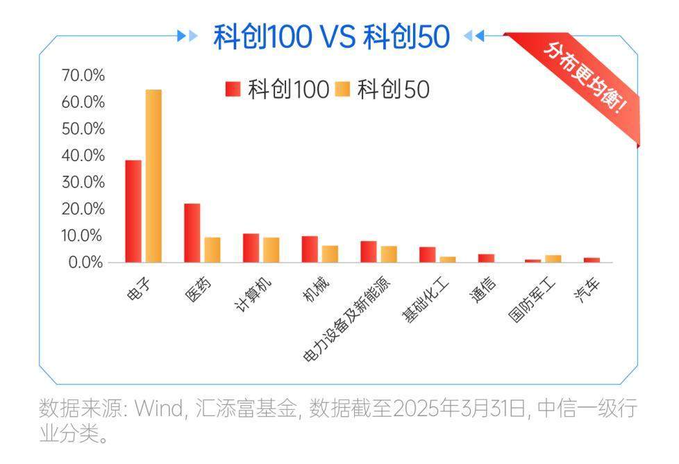 科创板100指数行业主要集中在电子(38%)、医药(20%)、计算机(13%)、电力设备及新能源(9%)、机械(9%)等“硬科技”领域,比科创50指数更加均衡。